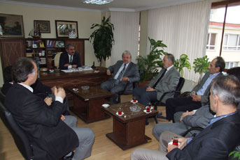 Saadet Partisi Sivil Toplum Kuruluslariyla Iliskilerden So- rumlu Genel Baskan Yardimcisi Necmettin Aydin, eski millet- vekillerinden Yasar Canbey ve Yakup Budak’in yer aldigi heyet, Genel Sekreterimiz Halil Etyemez, Genel Mali Sekreterimiz Ahmet Özer, Genel Teskilatlanma Sekreterimiz Erol Battal, Genel Basin Yayin Sekreterimiz Hidir Yildirim, Genel Egitim ve Sosyal Isler Sekreterimiz Esat Tektas ve Genel Mevzuat ve Toplu Görüsme Sekreterimiz Ramazan Çakirci ile görüstü.