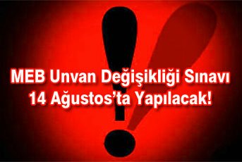“Millî Egitim Bakanligi Personeli Görevde Yükselme ve Unvan Degisikligi Yönetmeligi kapsaminda merkez ve tasra teskilati kadrolari için Unvan Degisikligi Sinavi çalismalari baslatilmis ve Unvan Degisikligi Sinavinin 14 Agustos 2011 tarihinde yapilmasi planlanmistir.