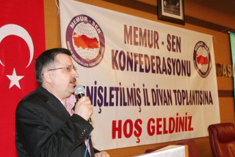Memur-Sen Tekirdag Il Temsilciligi Genisletilmis Il Divan Toplantisi, Ticaret ve Sanayi Odasi Meclis Salonu’nda yapildi. Toplantida konusan Egitim-Bir-Sen ve Memur-Sen Genel Baskani Ahmet Gündogdu, Türkiye’de memur sendikaciliginin geç anlasildigini, Avrupa’da ise temel hak ve özgürlüklerden sayildigini söyledi. Türkiye’de kamu çalisanlarinin örgütlülügünün önüne sürekli engeller çikarildigini ifade eden Gündogdu, darbecilerin olusturdugu her iklimin, özgürlüklere bir darbe vurdugunu kaydetti. Darbecilerin ülkeye verdigi zarara karsin, sendikacilik yaparken ücret sendikaciligini esas almak yerine ülke meselelerine duyarlilik gösterdiklerini belirten Gündogdu, “Agacin gövdesi yanarken, meyve derdinde olmayiz. Bunun bedelini de gerektigi sekilde öderiz” dedi.