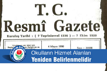 06.05.2010 tarih ve 27573 sayili Resmi Gazetede yayinlanarak yürürlüge giren Milli Egitim Bakanligi Ögretmenlerin Atama ve Yer Degistirme Yönetmeligine göre Türkiye, 3 Hizmet Bölgesine ve 6 Hizmet Alanina ayrildi. 1- 2 ve 3. hizmet alaninda bulunan okullar zorunlu hizmet kapsaminda sayilmazken, 4-5 ve 6. hizmet alaninda bulunan okullardaki çalisma süreleri zorunlu hizmet kapsaminda degerlendirildi. Okullarin hizmet alaninin belirlenmesi sürecinde tasrada yapilan bazi hatalar dolaysiyla ilçe bazinda ve okul bazinda olusan magduriyetlerin giderilmesine yönelik teskilatimizdan gelen talebi bakanliga sunduk.