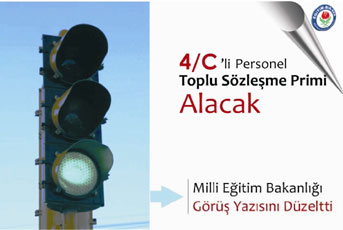 Milli Egitim Bakanligi Idari Mali Isler Dairesi Baskanligi tarafindan 07.04.2011 tarih ve 01412 sayili yeni yazida “657 sayili Kanunun 4/C maddesinde çalisan personelden kamu görevlileri sendikalarina üye olup, aylik ve ücretlerinden üyelik ödentisi kesilen geçici personele toplu sözlesme priminin ödenmesi gerekmektedir” denildi