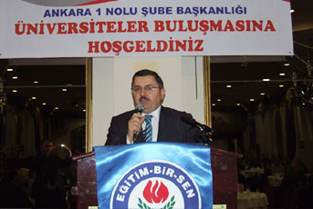 Ankara 1 No’lu Sube Baskanimiz Mustafa Kir’in da bir konusma yaptigi ‘Üniversiteler Bulusmasi’na, Genel Sekreterimiz Ahmet Özer, Genel Teskilatlanma Sekreterimiz Murat Bilgin, Genel Basin Yayin Sekreterimiz Ali Yalçin, Genel Egitim ve Sosyal Isler Sekreterimiz Teyfik Yagci da katildi.