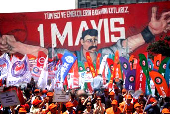 Hükümetin geçen yil Emek ve Dayanisma Günü ilan ettigi 1 Mayis, ikinci kez Taksim Meydani’nda kutlandi. 34 yil önce kanli provokasyona sahne olan meydan, sendikalarin bayraklariyla karnaval yerine döndü. Kutlamalarda, 1977’deki olaylarda hayatini kaybeden 34 kisi de unutulmadi. Gruplar, Kazanci Yokusu’nun Taksim çikisina kirmizi karanfiller birakti. O günü yasayanlar, ‘Kanli 1 Mayis’in faillerinin yargilanmasini istedi.
