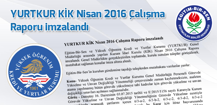 Yüksek Öğrenim Kredi ve Yurtlar Kurumu KİK Ekim 2016 çalışma raporu imzalandı